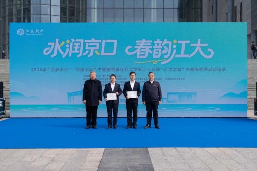 3月20日上午,“水润京口·春韵江大”2026年“世界水日”“中国水周”主题宣传暨江苏大学第二十五届“江大之春”主题服务季启动仪式在江苏大学图书馆南广场举行。本次活动由江苏大学与镇江市京口区联合举办,江苏大学党委副书记杨道建、镇江市水利局副局长汤兵、京口区副区长褚小明等校地领导出席活动。
